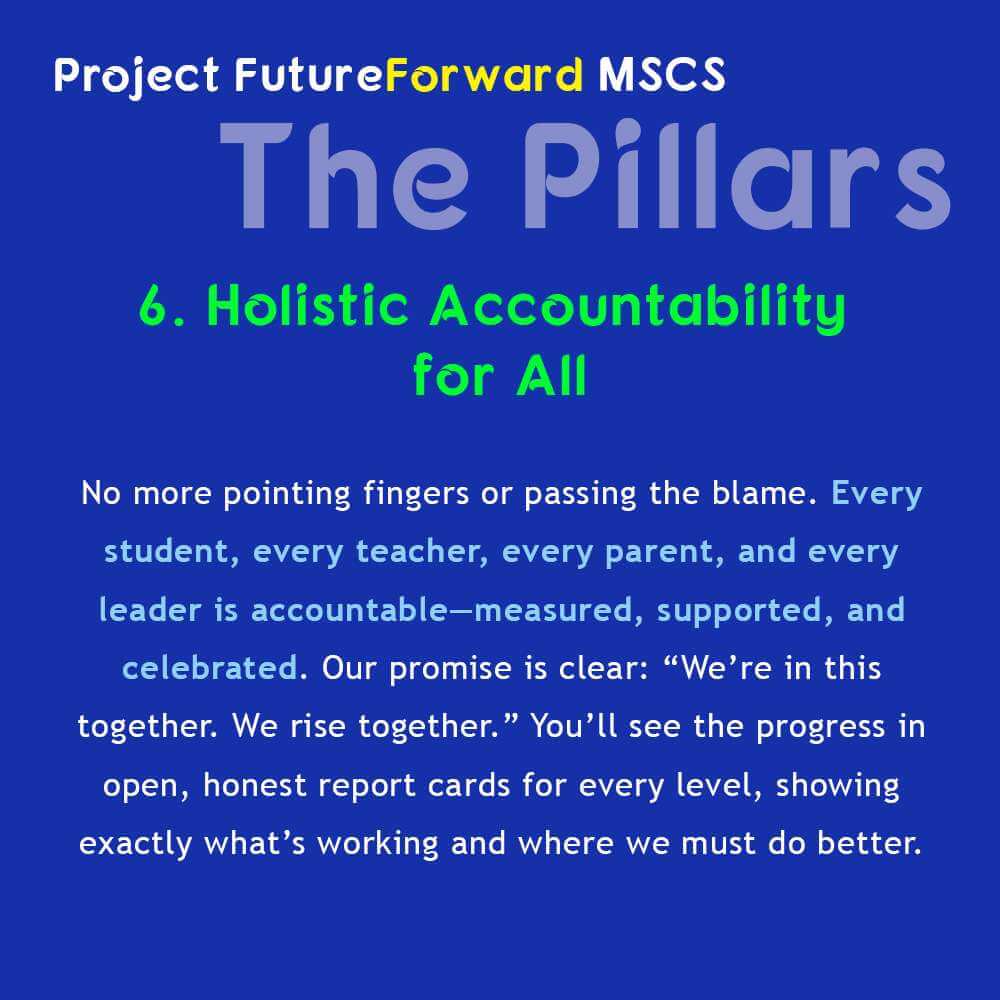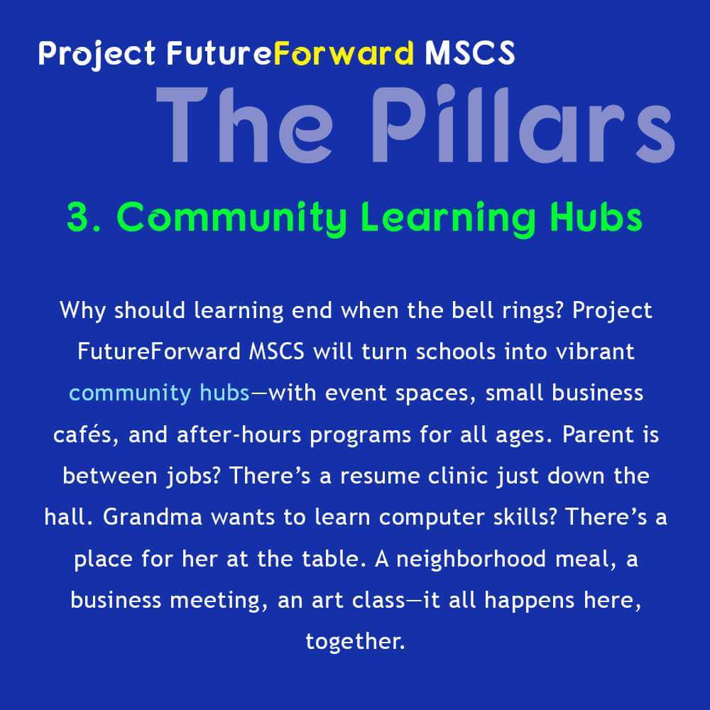 That’s what Project FutureForward MSCS is all about: “Where Learning Meets Community.” When we build on the right foundation, amazing things happen—not just for our kids, but for all of us. And it starts with a promise, kept in six bold pillars. These aren’t just ideas. They are the stones on which we can change our children’s future, and with it, the soul of this city.
