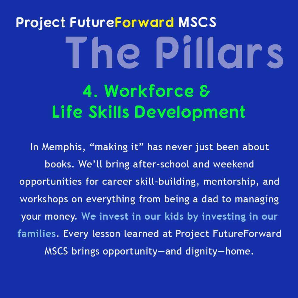 In Memphis, “making it” has never just been about books. We’ll bring after-school and weekend opportunities for career skill-building, mentorship, and workshops on everything from being a dad to managing your money. We invest in our kids by investing in our families. Every lesson learned at Project FutureForward MSCS brings opportunity—and dignity—home.