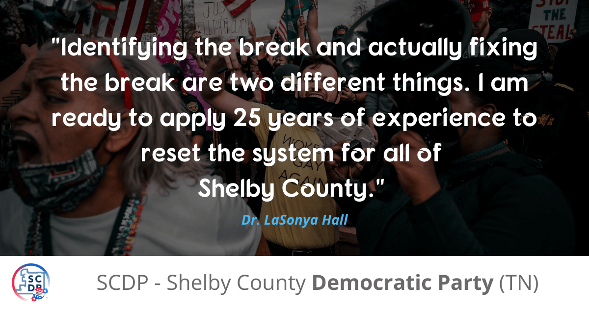 "Identifying the break and actually fixing the break are two different things. I am ready to apply 25 years of experience to reset the system for all of Shelby County." — Dr. LaSonya Hall